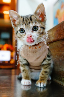 墨墨(又名:墨子),是小店第一隻黑貓,聰慧的她根本沒有所謂的適應問題。一進到店裡,馬上四處探險,接下來便四處掃光碗裏的飼料,貓奴怕她拉肚子,趕緊將各個飼料碗收起來,以免這位小妞成了食物處理機。